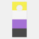 Türklammer mit dem Lippenstift-Flag, der nicht binär ist. Eine gelbe, weiße, lila und dunkelgraue Flagge der Enby-Stolz-Bewegung