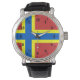 Watch with design with a flag of historic county of Orkney, in Scotland, Great Britain; red flag with blue and yellow Nordic cross