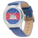 Kinderuhr aus Edelstahl mit blauem Lederarmband