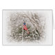 Die Farben der Fahne der Vereinigten Staaten sind durch die verschneiten Zweige zu sehen.