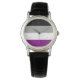 Sehen Sie mit der asexuellen Stolperflagge mit schwarzem, grauem, weißem und lila gestreiftem Muster.