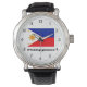 Uhr, Vintage Männeruhr mit schwarzem Lederarmband