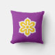 Throww Kissen mit einem Design mit der Flagge der Kyoto-Präfektur in Japan (京 都 府, Kyōto-fu), eine lila Fahne mit einem weißen und gelben Symbol einer Kirschkirsche Blume