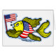 Der Flagge-Fisch, Sparky die Fische hält und das Flaggefeiert Juli 4.