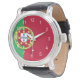 Uhr, Vintage Männeruhr mit schwarzem Lederarmband