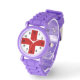 Uhr, Kinderuhr aus Edelstahluhr mit lila Lederarmband