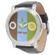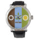 Uhr, Vintage Männeruhr mit schwarzem Lederarmband
