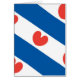 Flag Friesland, eine Provinz in den Niederlanden. Es besteht aus blauen und weißen diagonalen Streifen; in den weißen Streifen sind roten pompeblêden, Blätter der gelben Wasserlilie, die vielleicht an Herzen erinnern, aber nach den offiziellen Anweisungen "sollte nicht herzförmig sein".