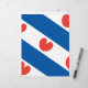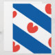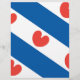 Flag Friesland, eine Provinz in den Niederlanden. Es besteht aus blauen und weißen diagonalen Streifen; in den weißen Streifen sind roten pompeblêden, Blätter der gelben Wasserlilie, die vielleicht an Herzen erinnern, aber nach den offiziellen Anweisungen "sollte nicht herzförmig sein".