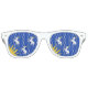 Party Shades mit Design mit einer Fahne des historischen Landkreises von Merioneth, in Wales, Großbritannien; blaue Azurflagge mit drei weißen Ziegen und gelber Sonne