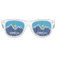 Sonnenbrille mit einem Design mit der Fahne von Orem, Utah. Eine blaue, weiße und gelbe Flagge mit Berggipfeln und der Sonne im Zentrum