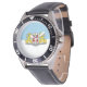 Uhr, Vintage Männeruhr mit schwarzem Lederarmband