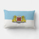 Lumbar Pillow mit Design mit der Fahne von Riga, Hauptstadt Stadt Lettland; weiß-blaue Fahne mit Wappen mit zwei goldenen Löwen, die einen Schild in der Mitte halten