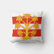 Kissen mit Design mit einer Fahne des historischen Landkreises von Westmorland, in England, Großbritannien; weiße und rot gestreifte Fahne mit goldenem heraldischem Apfelbaum in der Mitte