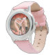 Kinderuhr aus Edelstahl mit rosa Lederarmband