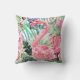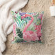 Aquarellbild eines schönen rosa Flamingos, umgeben von tropischen Pflanze und Blume.