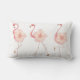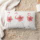 Weißes Lumbalkissen mit rosa Flamingos und Hibiskus-Blume.