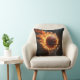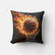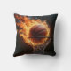 Ein Basketball, der in Flammen verstrickt ist, wird in der Luft gefangen, während er sich dem Reifen nähert, und betont dynamische Bewegung und Intensität