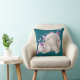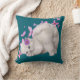Flauschig weiße Kitten umgeben von rosa Blume und Kissen