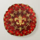 Fleur-de-lis-Ornament Roter Marmor und Gold Rundes Kissen