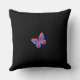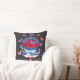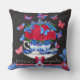Ein Kissen mit einem Ausdruck eines antiken Porzellanbechers, gefüllt mit blauen und roten Blume und Schmetterlingen vor einem schwarzen Kalkboard Hintergrund. Sieht gut aus wie ein Paar mit Fleur Porcelain Vögel und Birdcage Kissen. Hübscher französischer Flair! Für alle, die französisch und blau-weiß Liebe Porzellan. Ein super Polster für ein französisches Bauernhaus-Aussehen. Es koordiniert auch schön mit tickenden Streifen, Ginghams und weiß-schwarz Interieur.