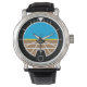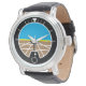 Uhr, Vintage Männeruhr mit schwarzem Lederarmband