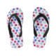 Ein schönes Paar Flip Flops für Jungen und Mädchen, der Hintergrund besteht aus einem breiten weißen Raum mit hellen Kugeln verziert.