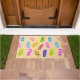 Eine individuelle Begrüßungsmatte mit niedlichen und farbenfrohen umgedreht Flop-Sandalen in verschiedenen Farben auf einem Sandstrand. Fügen Sie Text hinzu, wenn Sie möchten. Das ist die perfekte Begrüßungsmatte für ein Strandhaus oder Geschenk für jemanden, der seine Flip-Flops .
