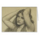 Vintage Bleistifstudie über junge Dame im Renaissancegurn, die ihr langes Haar über die Schultern zieht. Kunstwerk des Viktorianischen Künstlers John Waterhouse.