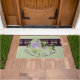 Mit lila Schriftzeichen gebogener Typografie auf einem blumengeschmückten gemusterten Designer-Akzent