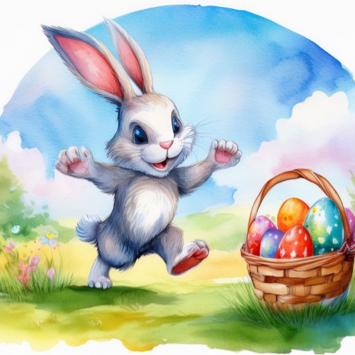 Wasserfarben bemalt niedlichen Hasen, elegant dekoriert mit zarten Blumenelementen und wunderschön dekorierten Eiern. Schönes Ostergeschenk!
