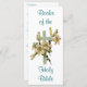 Eine wunderschöne Karte, die sich perfekt als Lesezeichen für Ihre Bibel eignet. Die Vorderseite ist mit einem blauen Kreuz bedeckt, das von Blume bedeckt ist. Der Rücken hat die Bücher des neuen und alten Zeugnisses.