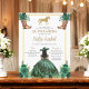Feiern Sie eine einzigartige Quinceañera mit einer Floral Emerald Green und Gold Boots & Horse Einladung. Dieses einzigartige Design verbindet elegante Blumendetails mit rustikalem Charme, mit lebendigen smaragdgrünen Farbtönen und glänzenden goldenen Akzenten. Mit stilvollen Cowboystiefeln und einem majestätischen Pferd ist es perfekt für eine ländlich inspirierte Quinceñera, die Tradition mit einer modernen Drehung verbindet. Ideal für eine Feier voller Persönlichkeit und Eleganz, lädt diese Einladung zu einem unvergesslichen Ereignis ein, bei dem Schönheit, Abenteuer und Freude im Zentrum der Bühne stehen.
