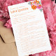 Viel Spaß beim Brautparty/Bachelorette/Hochzeitsspielen mit diesem coolen Spiel, das hübsche Rosa und Orange Aquarell mit floralen und bearbeitbaren Texten bietet. Passen Sie es an, wenn nötig, indem Sie auf "Bearbeiten mit dem Design-Tool" klicken.