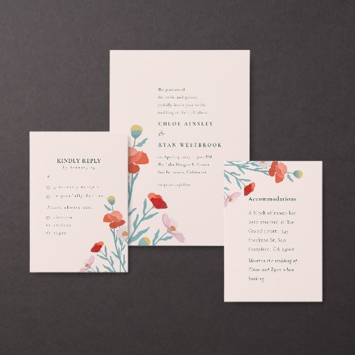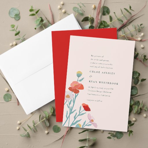 Diese Hochzeitseinladung mit handbemalten Wildblumen bringt eine Touch natürlicher Eleganz in ein schlichtes, aber dennoch raffiniertes Design.