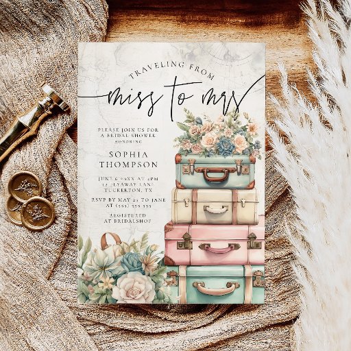 Floral Miss zu Mrs. Travel Brautparty Ticket Einladung