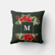 Wunderschönes klassisches, kurzgegrammatiertes Kissen für den Winterurlaub mit traditionellen roten Weihnachtspoinsettias. Sie werden dieses dunkle Jägerwald-grüne Kissen als einen Urlaubskünstler Liebe.