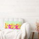 Das Kissen ist rot, rosa und gelb.