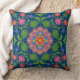 Ein schick gezogenes Kissen oder Kissen mit einem farbenfrohen Floral Rangoli Muster auf einem Tief-blauen Hintergrund, den Sie mit dem Symbol 'Dropper' ändern können. Als Teil der Posh & Painterly 'Rangoli' Kollektion passt dieses Muster in jedes quadratische oder runde Kissen oder Kissen.
