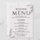 Dieses Blumenkissingmenü eignet sich hervorragend für einen Empfang mit Hochzeit. Das romantische Design ist schlicht mit Blume geschmückt, mit botanischem Rand und einem subtilen, blütenfarbenen Hintergrund.