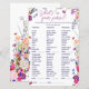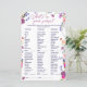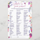 Mit diesem Blumenmotiv "Was ist in Eurem Purse-Spiel? Die Gäste durchsuchen ihre Geldbörsen, sammeln Punkte für jeden Gegenstand und sehen, wer die höchste Punktzahl erzielt. Dieses Design besticht durch eine lebendige Mischung aus handbemalten Blumen in lila, rosa und korallenfarbenen Sets, die auf einem weißen Hintergrund für eine elegante und spielerische Touch sorgen. Ideal für Brautpartys, Babyduschen und Geburtstagspartys. Leicht zu spielen für Ansammlungen jeder Größe.