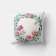Dieser elegante Blumenkranz besticht durch delikate pastellfarbene Blume. Grüne Blätter bilden die Basis des Kranzes, der mit Blume überzogen ist, in weichen Pastellpinken und Pfirsich. Im Kranz ist eine Drachenfliege. Das Design ist auf beiden Seiten des Kissens.