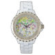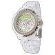 Eine wunderbare Damenuhr mit weißem Armband und grün-weiß-kariertem Ziffernblatt. Trägt sich ganz fabelhaft. Exzellenter Druck, sehr klare Farben. Schönes Design.