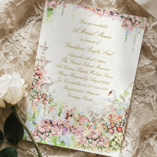 florales Schwan-Chic-Calligraphy-Brautdusche Einladung