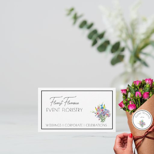 Schöne, vereinfachende Blumenaufkleber, um Ihnen Geschenke oder Bouquet-Verpackung hinzuzufügen. Schwarze Grenze und moderner Schriftart, die bearbeitet werden können, um Ihre Formulierung.