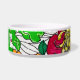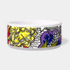 An original watercolor and ink artwork is transferred to a cheery Pet Bowl with a botanical theme