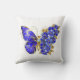 Jewelry, blue, sapphire, sparkling flower butterfly with wing decorated with blue, precious flowers with gold leaves on white background.