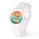 Uhr, Kinderuhr aus Edelstahluhr mit lila Lederarmband