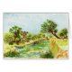 Flussufer-Campingplatz - diese Aquarellmalerei stellt einen Zeltcampingplatz entlang dem Fluss dar. Ein Boot wird nahe dem Campingplatz angekoppelt und die gegenüberliegende Seite der Flussshows, die ein Reifenschwingen von einem großen Baum aufreihte, der den Fluss überhängt. Gedruckt von einer ursprünglichen Kunstmalerei auf Papier durch JC Prida.