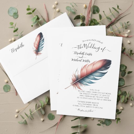 The Whispers of Grace: Feathered Elegance Kollektion ist darauf ausgelegt, die sanfte Schönheit und symbolische Bedeutung von Federn in einem raffinierten, künstlerischen Stil zu erfassen. Mit zarten, fließenden Federbildern in Pastelltönen in Rosa und Blau, ist diese Kollektion ideal für Paare, die ihre Hochzeitskunst gewollt haben, um Eleganz, Freiheit und Leichtigkeit widerzuspiegeln. Jedes Stück ist eine sanfte Darstellung von Anmut und Gelassenheit, ideal um eine beruhigende, romantische Atmosphäre zu schaffen. Von Einladungen und RSVP-Karten bis hin zu Sitzkarten und Gastgeschenke Hochzeiten bieten diese Designs eine subtile und dennoch wirkungsvolle Möglichkeit, Ihrem besonderen Tag eine natürliche Schönheit und eine sanfte, ätherische Touch hinzuzufügen. Personalisieren Sie jeden Gegenstand, um Ihre Hochzeit zu einem echten Spiegelbild Ihrer Liebe zu machen.